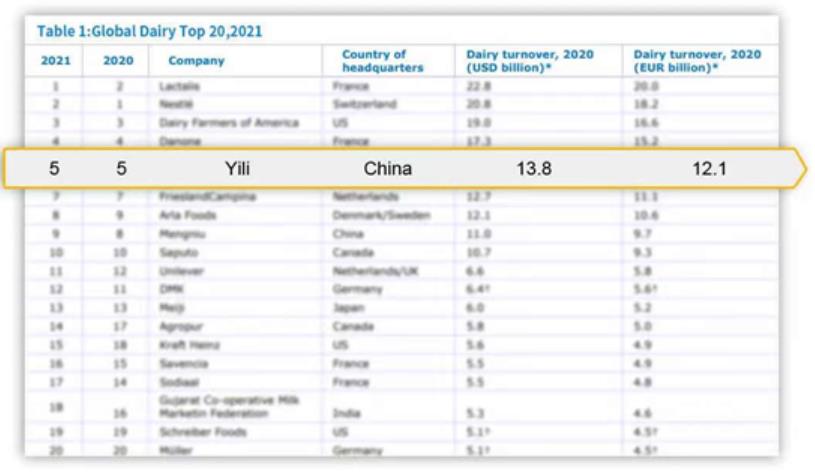 就在半年报发布前夕,荷兰合作银行公布了最新的全球乳业排名,作为去年唯一进入五强的亚洲乳企,伊利今年再次登上全球乳业五强榜单,并且绝对优势不断扩大。在全球五强的高位上,仍能取得双位数增长,不仅再次证明了伊利的“价值股”本色,也让伊利的“成长股”特征愈加显现。