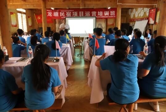 在龙塘村,乡村旅游专业合作社在融创和友成基金会的指导下成立,之后又以合作社为示范,引导村民自发组织了各类经济、技能培训、文娱、公益小组。帮扶项目组还展开了一系列培训,这些培训包括了餐厅和民宿的运营管理、蜡染和苗绣的技艺技能学习、非遗文化和非遗产品的市场推广、生态农产品的种植技术,以及合作社等小组的管理知识和龙塘旅游产业发展的各项机制等等,逐步培养提升龙塘村民的运营和市场开拓能力,达到“授之以渔”的效果。