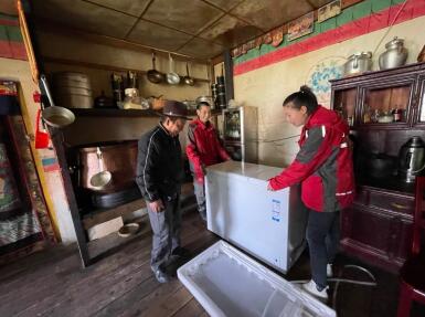 住在雅鲁藏布江畔的德庆多吉老人买了台冰箱,京东家电专卖店两天就送货上门了;