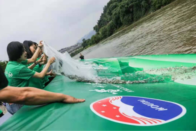 茅台员工在赤水河开展增殖放流活动