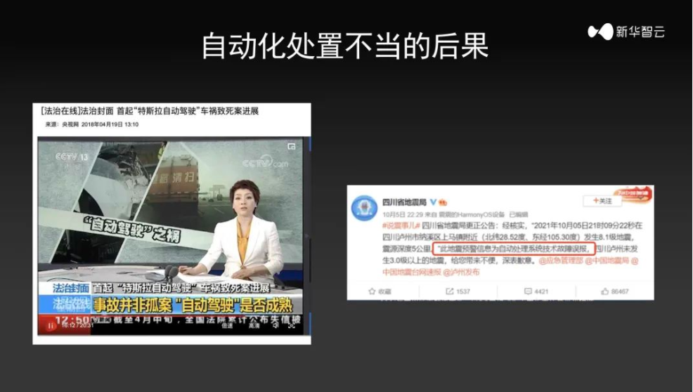 这里,我想特别强调下自动化处置不当的后果。今天,当人工智能在某些行业可以逐步取代人来做一些事情时,我们需要知道它带来的好处和便利,但同时也要把握和预防它的不当之处。自动驾驶处理不当,一定是人命关天的大事。