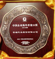 图为奇瑞荣获“2018中国企业海外形象20强”