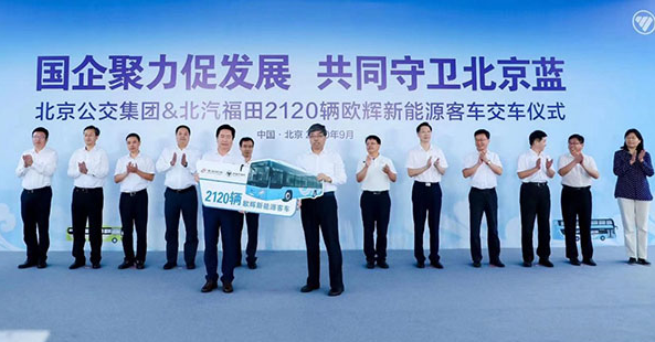 9月15日,以“国企聚力促发展 共同守卫北京蓝”为主题的“北京公交集团&北汽福田2120辆欧辉新能源客车交车仪式”在北汽福田总部举行。这是继2019年初2790辆福田欧辉新能源客车投入北京公交集团运营之后的又一次规模化交付。此次2120辆福田欧辉新能源客车的交付,不仅有效推动了北京公共交通全面新能源化发展,同时展现了北京市属国企用实际行动促进北京市高质量发展的使命担当。