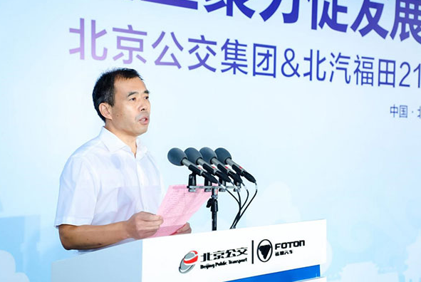 北京公交系统是北京公共交通重要的组成部分,是北京城市互通有无的重要保障。一直以来,北京公交坚持做首都智慧交通和绿色出行的倡导者和践行者。北京公交集团党委副书记、总经理朱凯在交车仪式上指出:“北京公交集团在‘立足首都,服务京津冀,努力打造国内领先、世界一流的现代公共交通综合服务企业’的目标定位下,努力践行‘让更多的人享受更好的公共出行服务’的企业使命,积极落实《北京市清洁空气行动计划》,大力推进新能源、清洁能源车辆发展,为打赢北京蓝天保卫战贡献力量。今年采购的2120辆福田公交车全部为新能源车,其中的纯电动车能量储备更大,续驶里程更长;更有利于方便我们灵活调度和远距离运营使用,更好地满足广大市民出行需求。