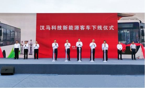 安徽省相关领导、吉利控股集团董事长李书福与高级副总裁俞学良出席开工仪式,并共同启动汉马科技新能源客车的下线。汉马新能源客车将重点投放安徽市场,首批产品将全部交付马鞍山公交集团。