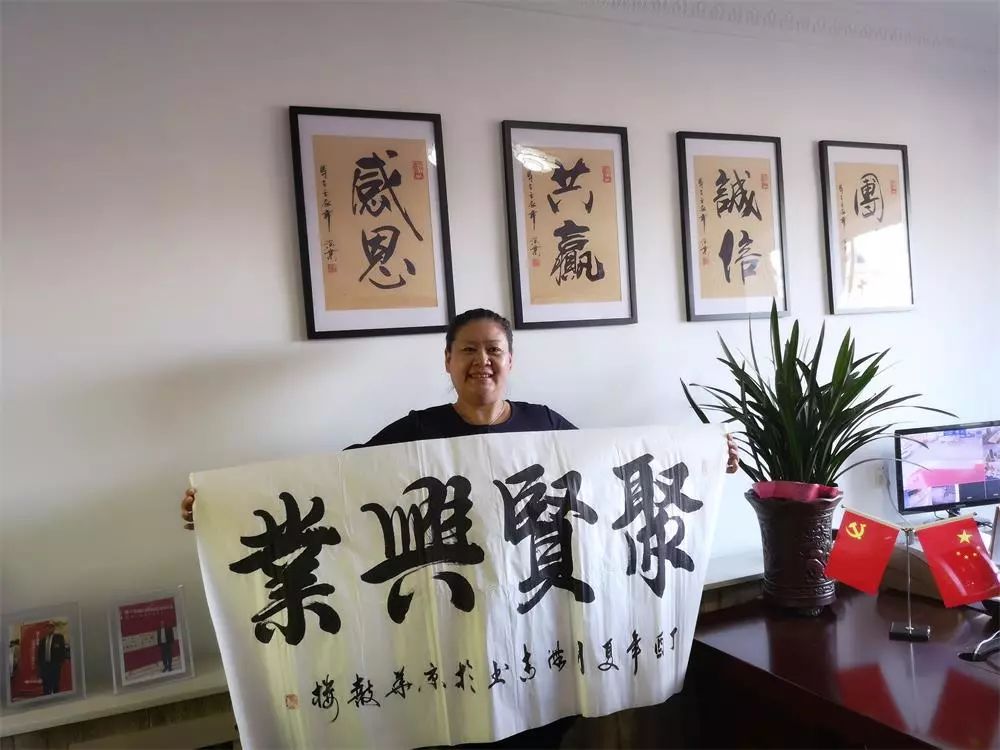 刘海青先生赠送的《聚贤兴业》字画作品笔笔苍劲有力,饱含浓浓心意。“兴业”, 引自于《 后汉书·黄琼传》:光武以圣武天挺,继统兴业。“聚贤兴业”的寓意是把有贤能的人聚集起来,重振大业。这四个字充分表达了刘海青先生对于申克金服亚布力分公司多年来所取得的成就的肯定,也对亚布力分公司能够吸纳与培养更多优秀的人才,全力开创业务发展新局面寄予希望。