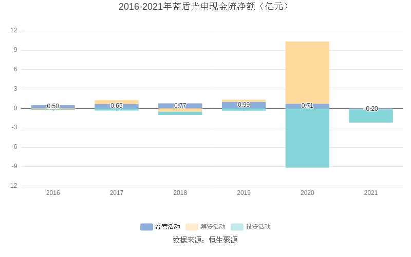 截至2021年末,公司经营活动现金流净额为-2030.38万元,同比减少9137.80万元;筹资活动现金流净额-73.52万元,同比减少9.63亿元;投资活动现金流净额-2.00亿元,相比上年同期增加7.16亿元。