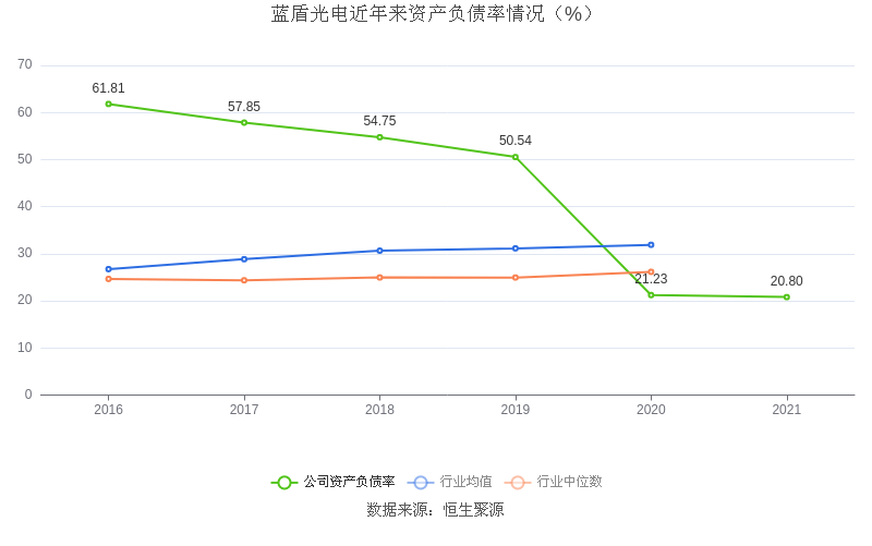 在偿债能力方面,公司2021年末资产负债率为20.80%,相比上年同期下降0.43个百分点,处于行业平均水平。