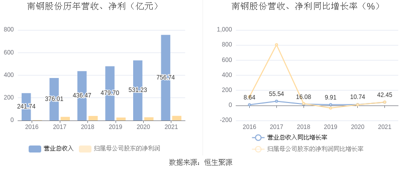 南钢股份:2021年净利润同比增长43.75% 拟10派3元