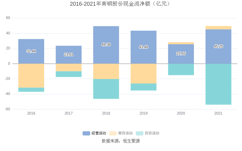 中证财讯 南钢股份(600282)3月23日披露2021年年度报告。2021年,公司实现营业收入756.74亿元,同比增长42.45%;归母净利润40.91亿元,同比增长43.75%;扣非净利润36.90亿元,同比增长49.84%;经营活动产生的现金流量净额为45.20亿元,同比增长76.23%;报告期内,南钢股份基本每股收益为0.67元,加权平均净资产收益率为16.49%。公司2021年度分配预案为:拟向全体股东每10股派3.00元(含税)。
