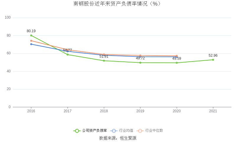 数据统计显示,南钢股份近三年净利润复合年增长率为0.68%,这一数据在2020年板材行业中排名5/18。