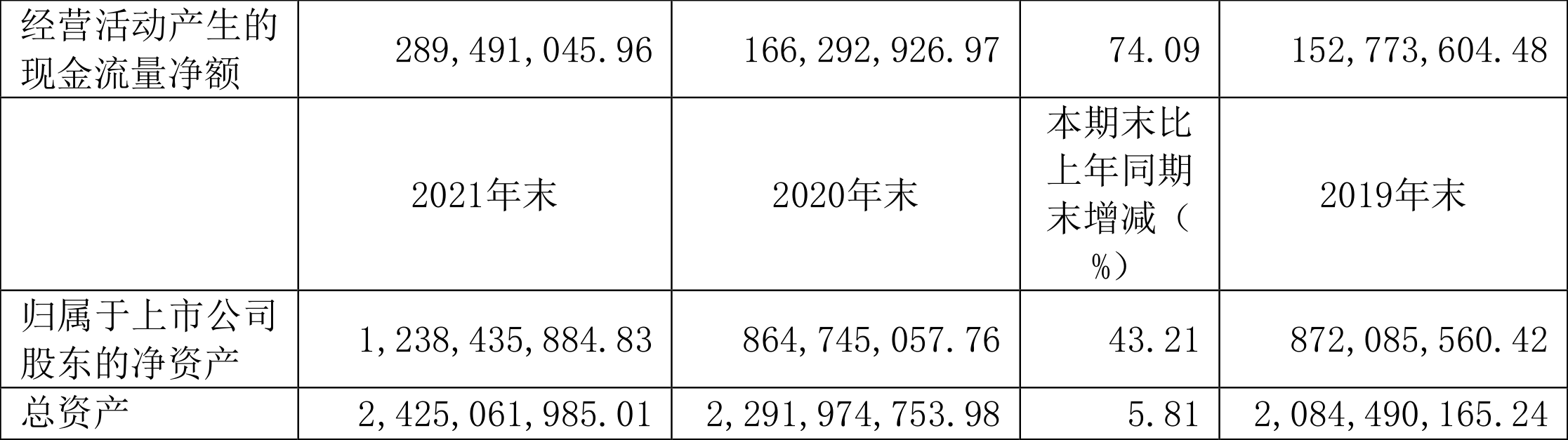 截至2021年末,公司经营活动现金流净额为2.89亿元,同比增长74.09%;筹资活动现金流净额1461.26万元,同比下降71.12%;投资活动现金流净额-2.56亿元,相比上年同期减少1.19亿元。
