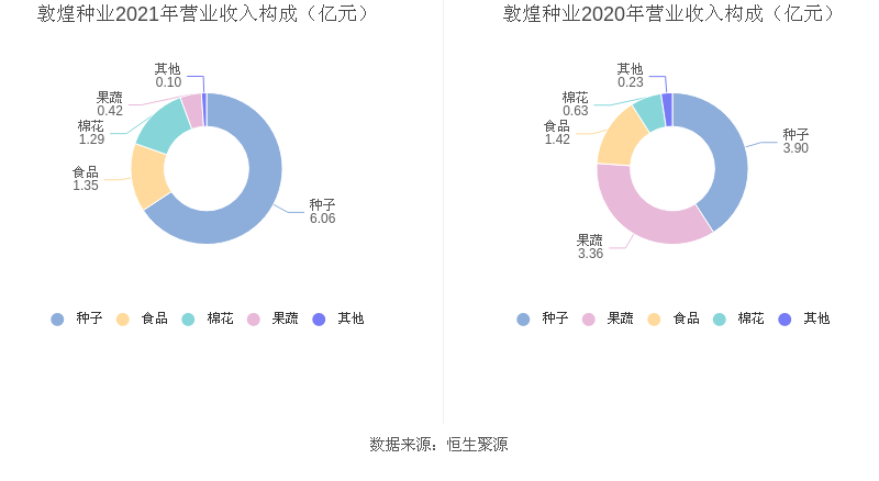 分产品来看,2021年度公司主营业务中,种子收入6.06亿元,占营业收入的65.68%,同比增长55.39%;食品收入1.35亿元,占营业收入的14.67%,同比下降4.76%;棉花收入1.29亿元,占营业收入的13.98%,同比增长105.08%。