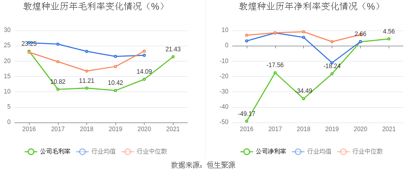 数据统计显示,敦煌种业近三年净利润复合年增长率为26.86%,这一数据在2020年种植业行业中排名7/20。