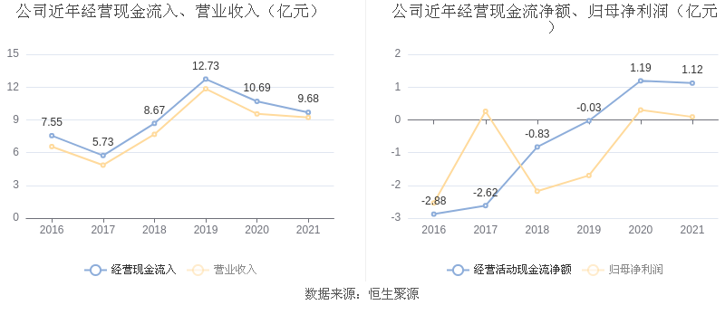 截至2021年末,公司经营活动现金流净额为1.12亿元,同比下降5.86%;筹资活动现金流净额-1.31亿元,同比增加3014.28万元;投资活动现金流净额616.84万元,相比上年同期下降96.93%。