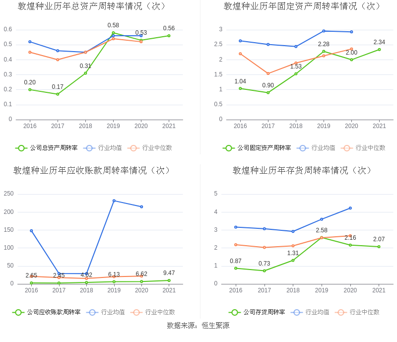 营运能力方面,2021年,公司总资产周转率为0.56次,上年同期为0.53次(2020年行业平均值为0.56次,公司位居同行业10/20);固定资产周转率为2.34次,上年同期为2.00次(2020年行业平均值为2.93次,公司位居同行业12/20);公司应收账款周转率、存货周转率分别9.47次、2.07次。