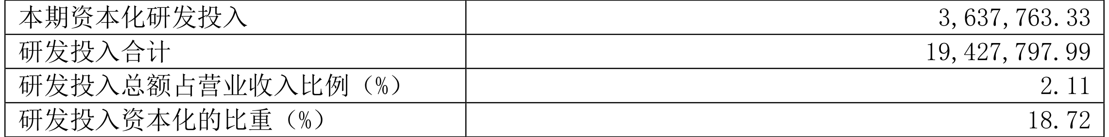 2021年全年,公司研发投入金额为1942.78万元,同比增长99.71%;研发投入占营业收入比例为2.11%,相比上年同期上升1.09个百分点。此外,公司全年研发投入资本化率为18.72%。