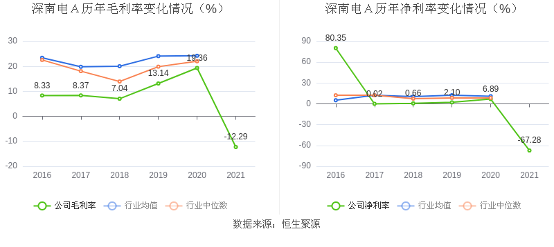 2021年,公司毛利率为-12.29%,同比下降31.65个百分点;净利率为-67.28%,较上年同期下降74.17个百分点。
