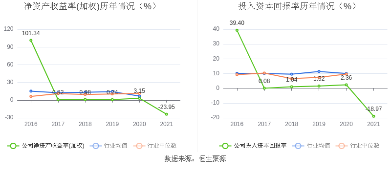 数据显示,2021年公司加权平均净资产收益率为-23.95%,较上年同期下降27.10个百分点;公司2021年投入资本回报率为-18.97%,较上年同期下降21.33个百分点。