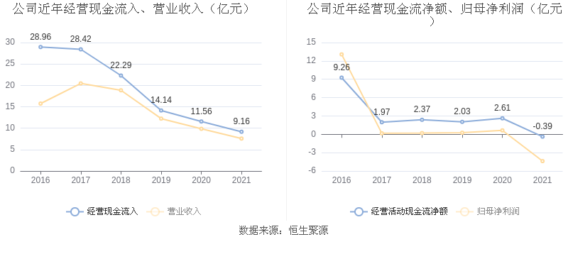 截至2021年末,公司经营活动现金流净额为-3925.83万元,同比减少3.00亿元;筹资活动现金流净额1.26亿元,同比下降43.07%;投资活动现金流净额-1.62亿元,相比上年同期增加3.27亿元。