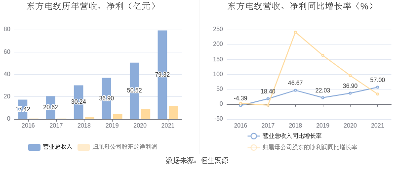 东方电缆:2021年净利润同比增长33.98% 拟10派3.5元