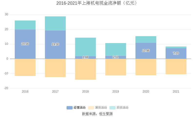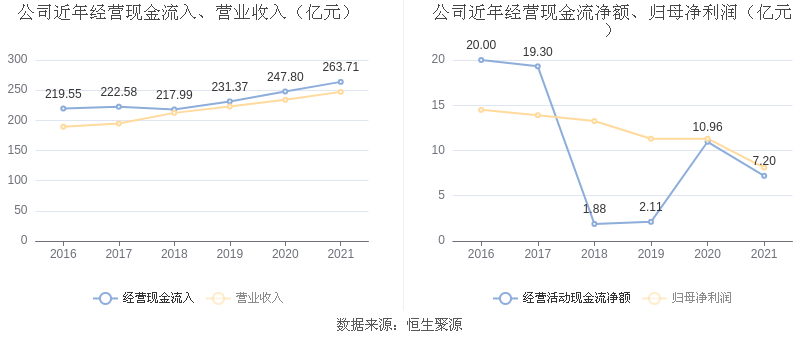 截至2021年末,公司经营活动现金流净额为7.20亿元,同比下跌34.29%;筹资活动现金流净额-10.49亿元,同比增加7002.66万元;投资活动现金流净额1.14亿元,相比上年同期下跌74.38%。