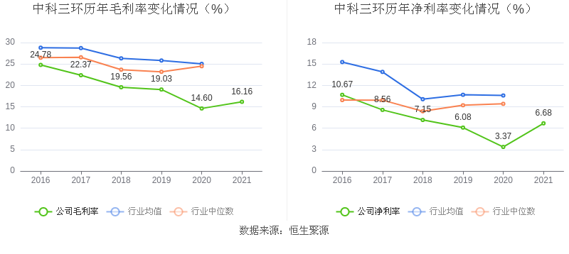 2021年,公司毛利率为16.16%,同比上升1.56个百分点;净利率为6.68%,较上年同期上升3.31个百分点。