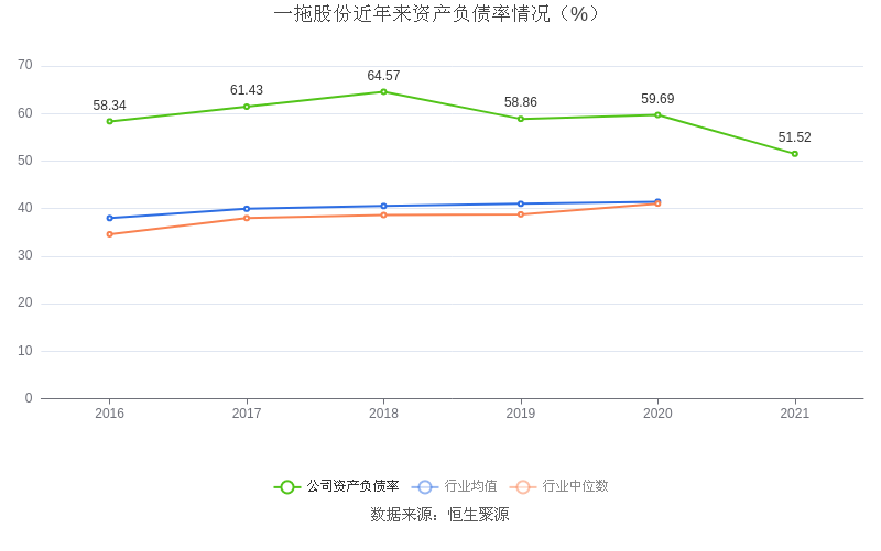 在偿债能力方面,公司2021年末资产负债率为51.52%,相比上年同期下降8.17个百分点,近年来整体高于行业均值。