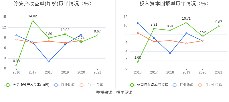 数据显示,2021年公司加权平均净资产收益率为9.67%,较上年同期增长1.93个百分点;公司2021年投入资本回报率为9.87%,较上年同期增长2.35个百分点。