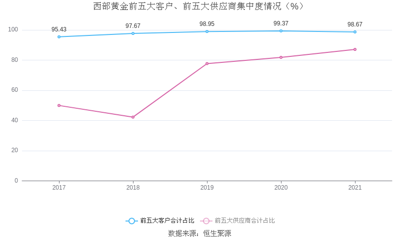 报告期内,公司前五大客户合计销售金额41.03亿元,占总销售金额比例为98.67%,公司前五名供应商合计采购金额33.01亿元,占年度采购总额比例为87.10%。