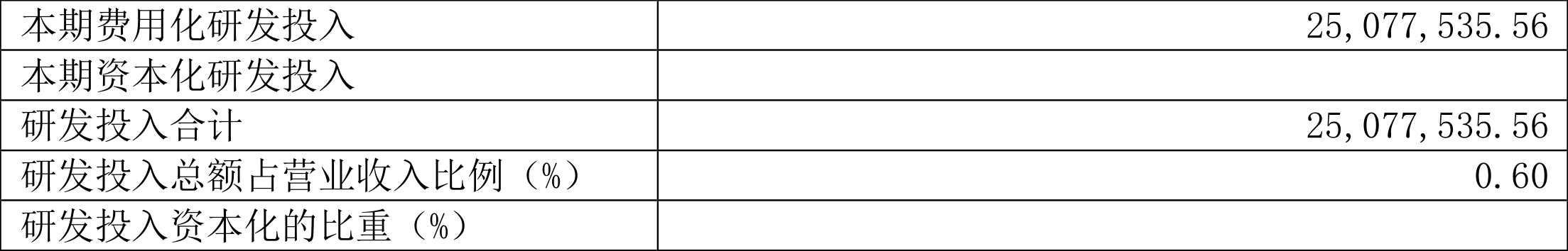 2021年全年,公司研发投入金额为2507.75万元,同比增长177.07%;研发投入占营业收入比例为0.60%,相比上年同期上升0.44个百分点。此外,公司全年研发投入资本化率为0。