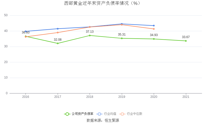 在偿债能力方面,公司2021年末资产负债率为33.67%,相比上年同期下降1.26个百分点,近年来整体低于行业均值。