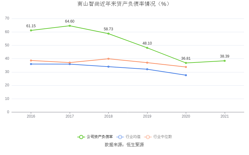 在偿债能力方面,公司2021年末资产负债率为38.39%,相比上年同期上升1.58个百分点,近年来整体高于行业均值。