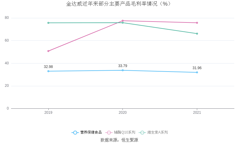 分产品看,营养保健食品、辅酶Q10系列、维生素A系列2021年毛利率分别为31.96%、75.75%、66.16%。