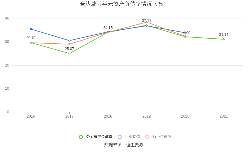 在偿债能力方面,公司2021年末资产负债率为31.14%,相比上年同期下降1.08个百分点,近年来整体低于行业均值。