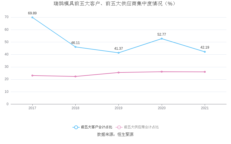 报告期内,公司前五大客户合计销售金额4.41亿元,占总销售金额比例为42.19%,公司前五名供应商合计采购金额2.17亿元,占年度采购总额比例为26.05%。