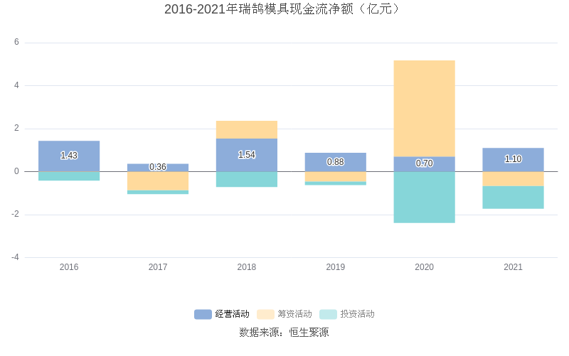 截至2021年末,公司经营活动现金流净额为1.10亿元,同比增长57.61%;筹资活动现金流净额-6744.21万元,同比减少5.14亿元;投资活动现金流净额-1.06亿元,相比上年同期增加1.33亿元。