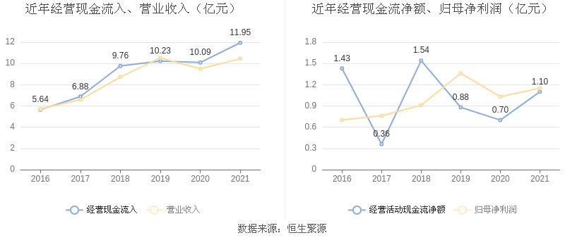 2021年,公司营业收入现金比为114.43%,净现比为95.25%。从近年数据来看,公司经营活动现金流入的增速与营业收入增速基本保持同步。