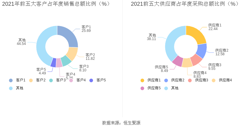报告期内,公司前五大客户合计销售金额5.17亿元,占总销售金额比例为55.46%,公司前五名供应商合计采购金额1.93亿元,占年度采购总额比例为61.89%。