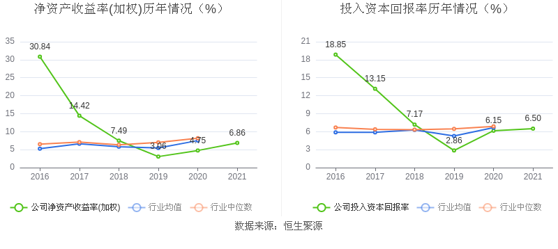数据显示,2021年公司加权平均净资产收益率为6.86%,较上年同期增长2.11个百分点;公司2021年投入资本回报率为6.50%,较上年同期增长0.35个百分点。