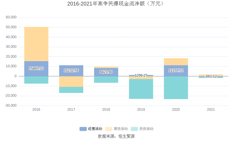 截至2021年末,公司经营活动现金流净额为-661.12万元,同比减少1.20亿元;筹资活动现金流净额1821.48万元,同比下降74.01%;投资活动现金流净额-1097.63万元,相比上年同期增加2.22亿元。
