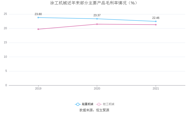 分产品看,起重机械、桩工机械2021年毛利率分别为22.46%、21.30%。