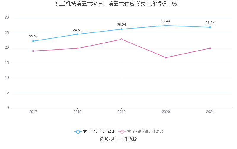 数据统计显示,徐工机械近三年净利润复合年增长率为40.01%,在工程机械整机行业已披露2021年数据的13家公司中排名第3。