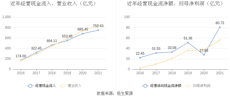 2021年,公司营业收入现金比为89.23%,净现比为143.78%。从近年数据来看,公司经营活动现金流入的增速与营业收入增速基本保持同步。