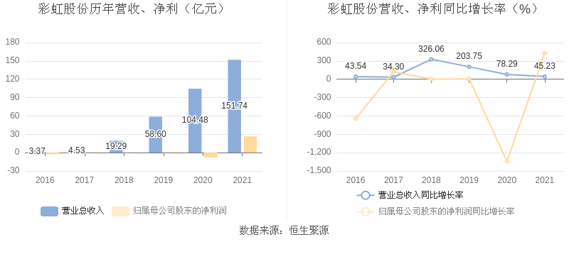 彩虹股份:2021年盈利26.69亿元 同比扭亏