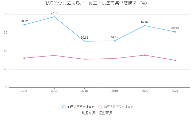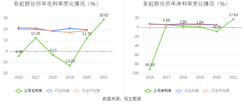 数据统计显示,彩虹股份近三年净利润复合年增长率为252.33%,在面板行业已披露2021年数据的20家公司中排名第2。