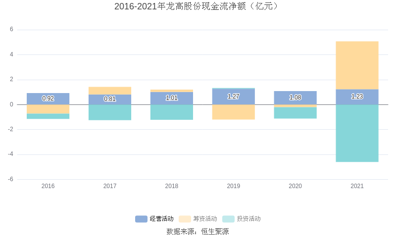 截至2021年末,公司经营活动现金流净额为1.23亿元,同比增长13.70%;筹资活动现金流净额3.84亿元,同比增加4.05亿元;投资活动现金流净额-4.60亿元,相比上年同期减少3.69亿元。