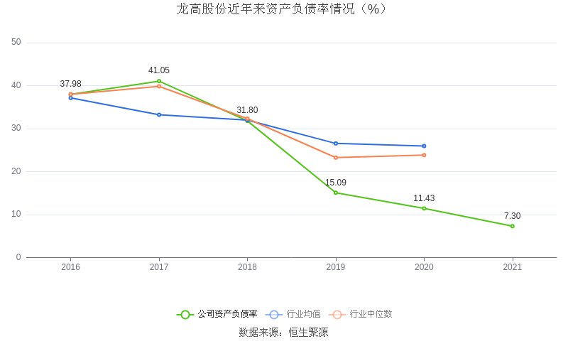 在偿债能力方面,公司2021年末资产负债率为7.30%,相比上年同期下降4.13个百分点,处于行业平均水平。