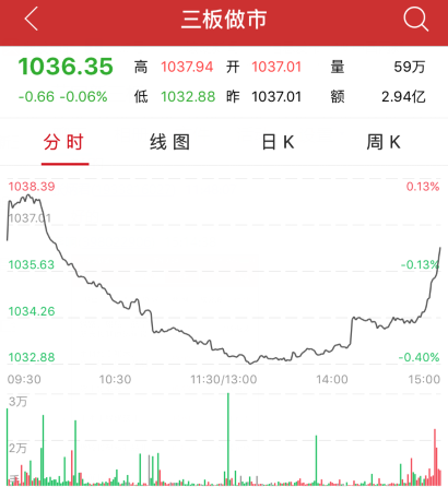 昨日,新三板做市指数开盘后迅速拉升翻红,盘中最高报1037.94点,随后持续下跌,十一点左右跌幅收窄。午后持续震荡上行,遭遇日线十七连阴。
