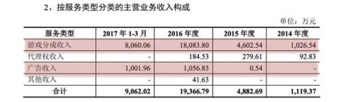 并且,除了产品上的高度依赖外,从业务模式来看,在柠檬微趣主营业务收入中,2014年、2015年、2016年游戏分成收入分别为1027万元、4602万元、1.81亿元,占比总营业收入的比例分别为91.7%、94.3%、93.4%。